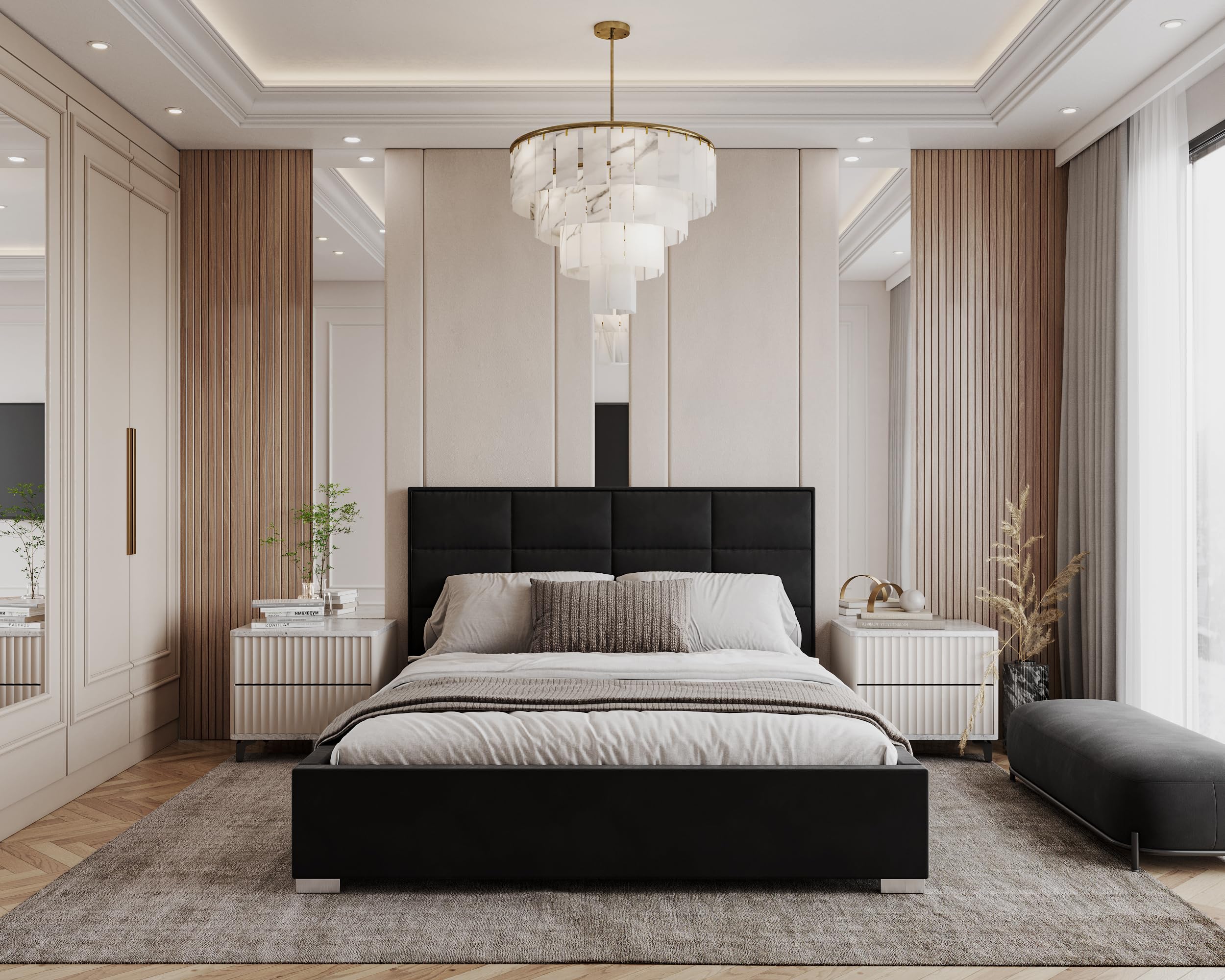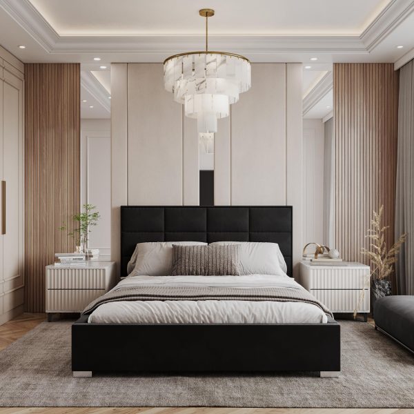 komfortables Doppelbett, das modernes Wohnen mit klassischem Design verbindet.