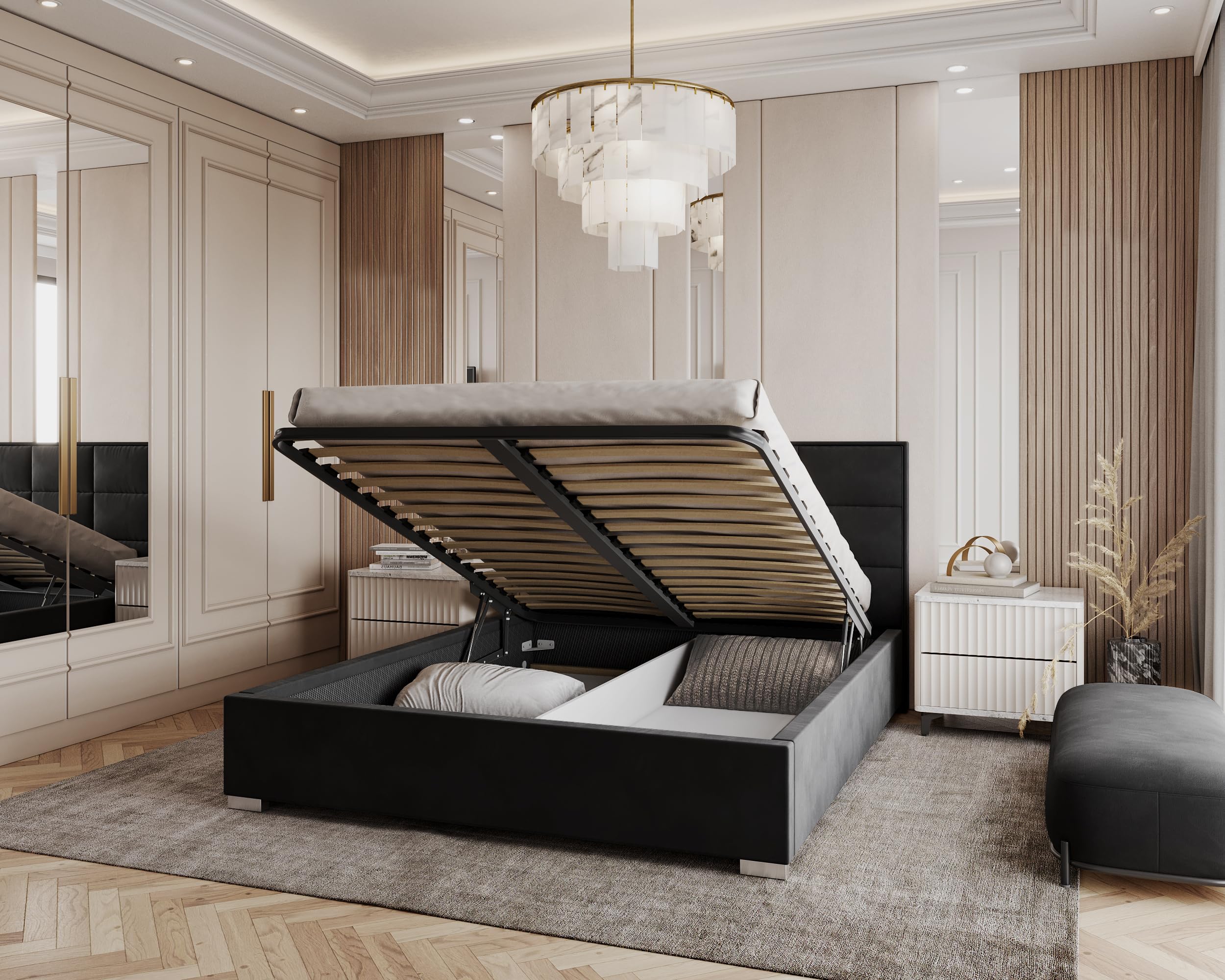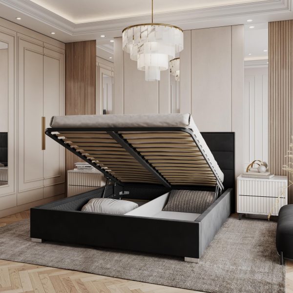 - Gasunterstützter Hebemechanismus für bequemen Zugang zum Bettkasten.