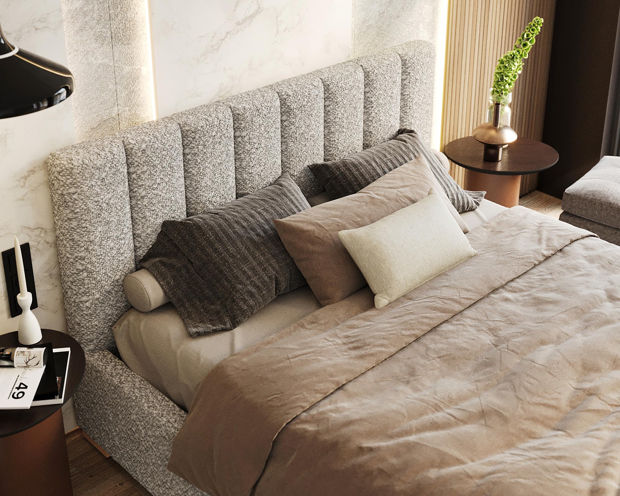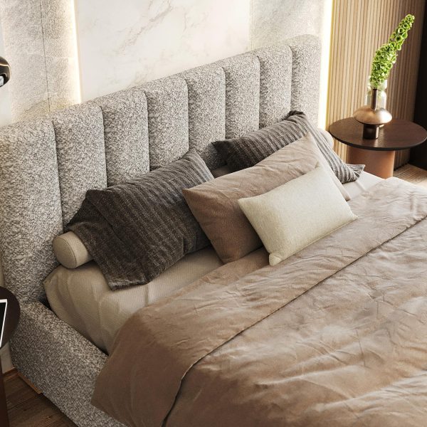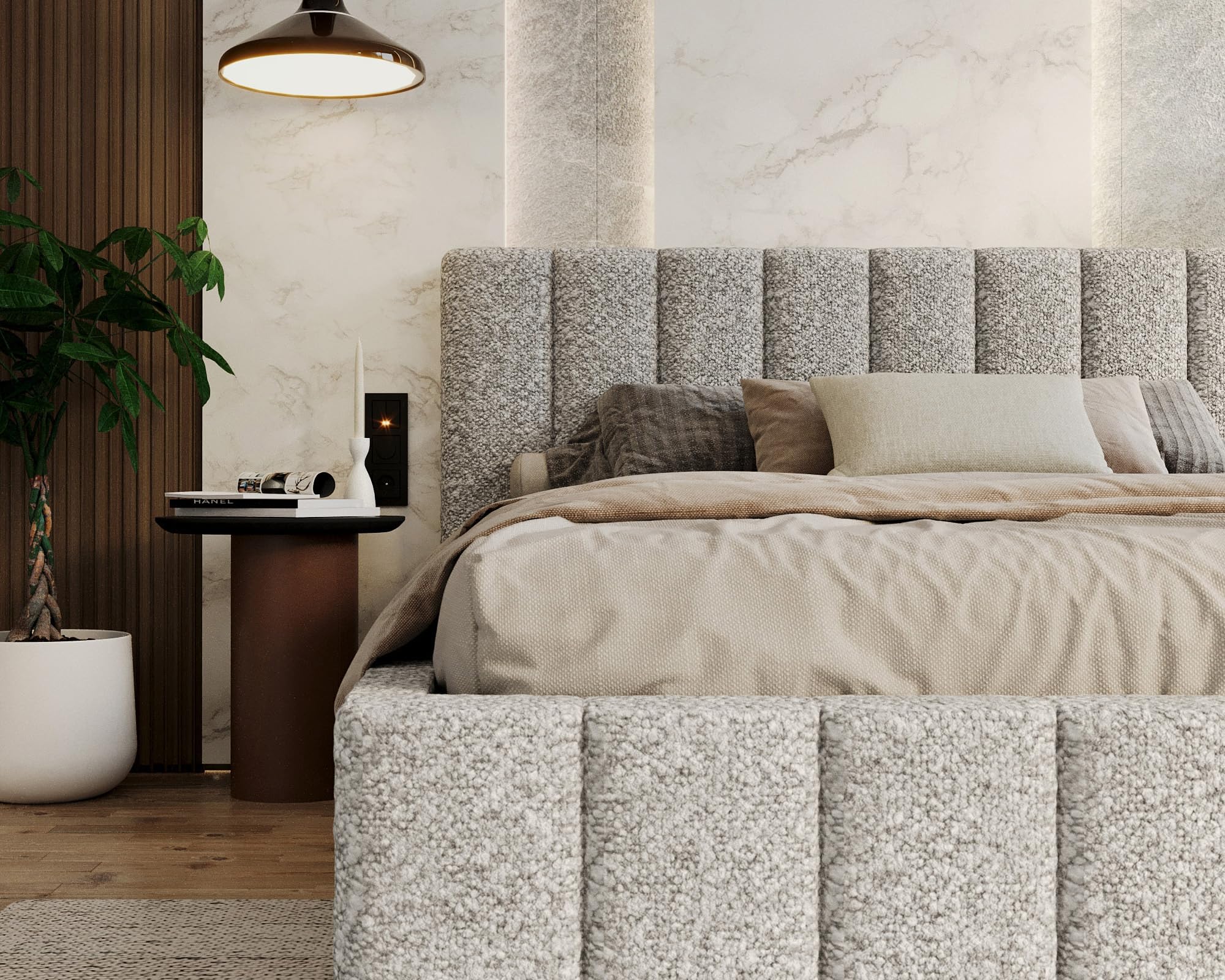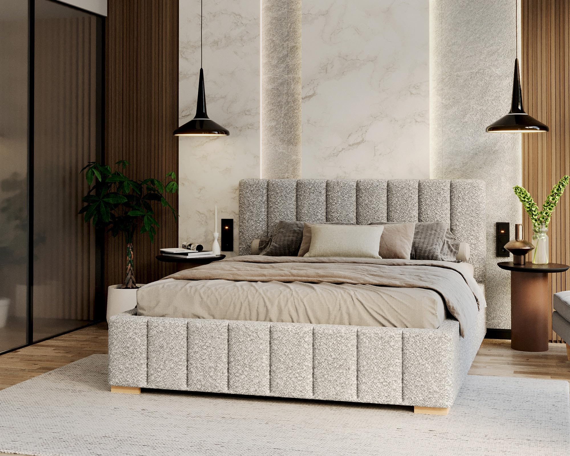 pflegeleichten Stoffen bezogen, die das Bett zu einem Highlight moderner Schlafzimmer machen.
