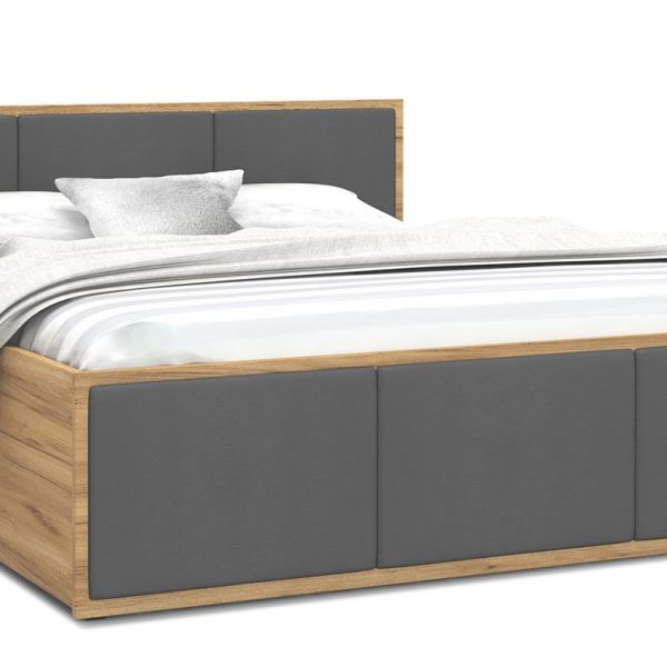 - lamellierte Möbelplatte: Eiche Craft – Gepolsterte Elemente: Grau