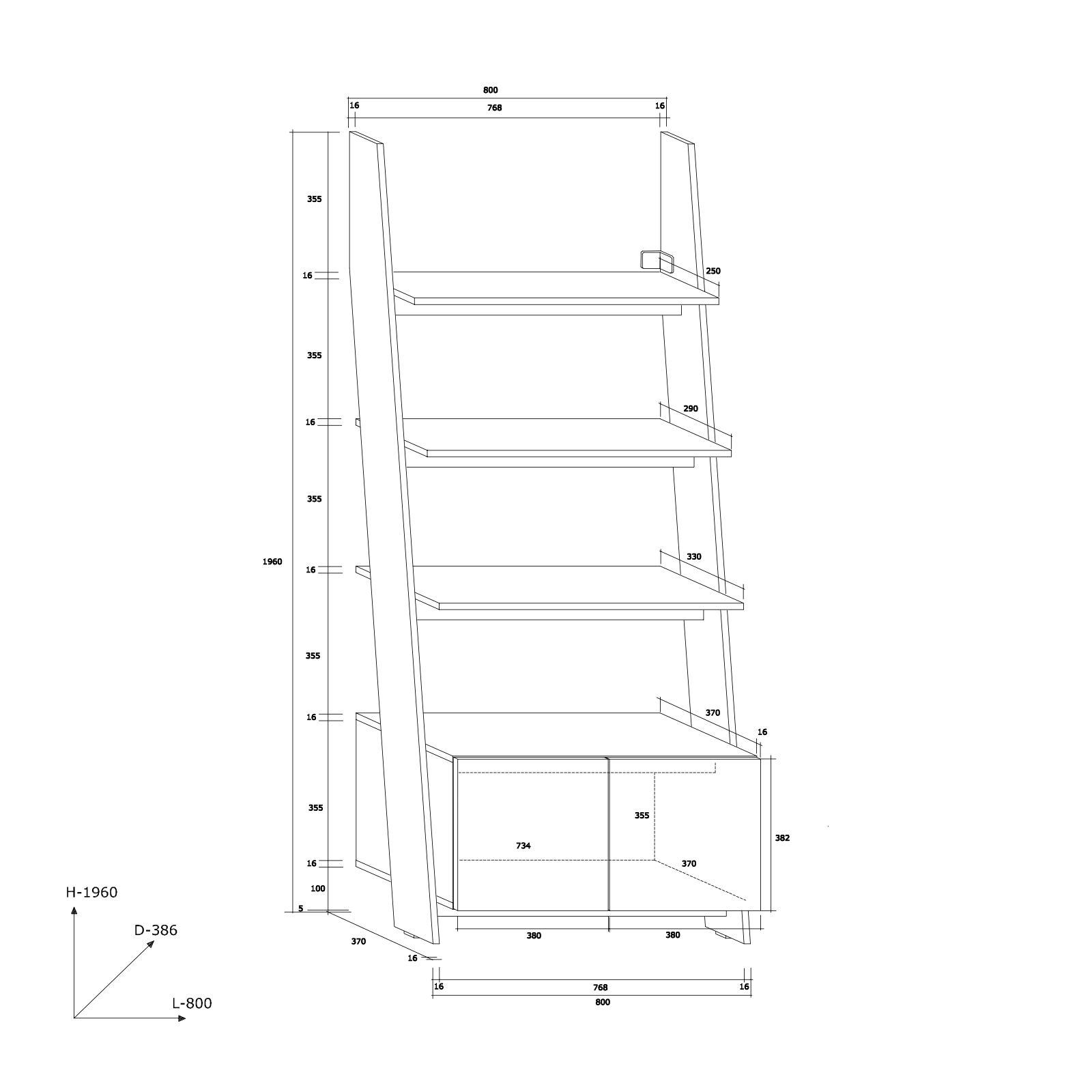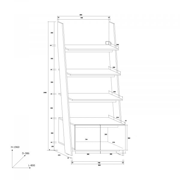 - Bibliothèque 80-1D – (RAC-07) – Hauteur: 196cm; Largeur: 80cm; Profondeur: 38,6cm.