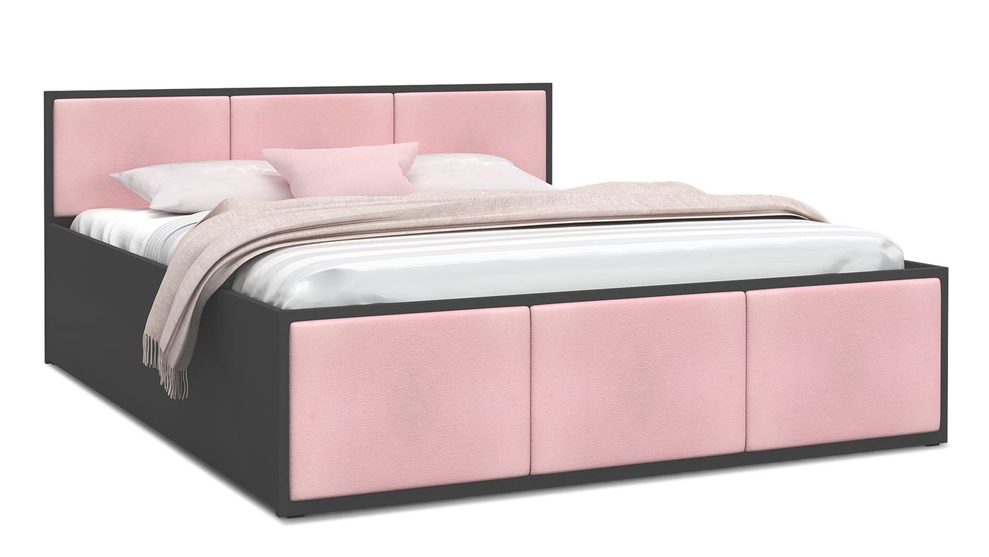 Lit PANAMA 160 Corps : Gris – Éléments Rembourrés :Rose Poudré