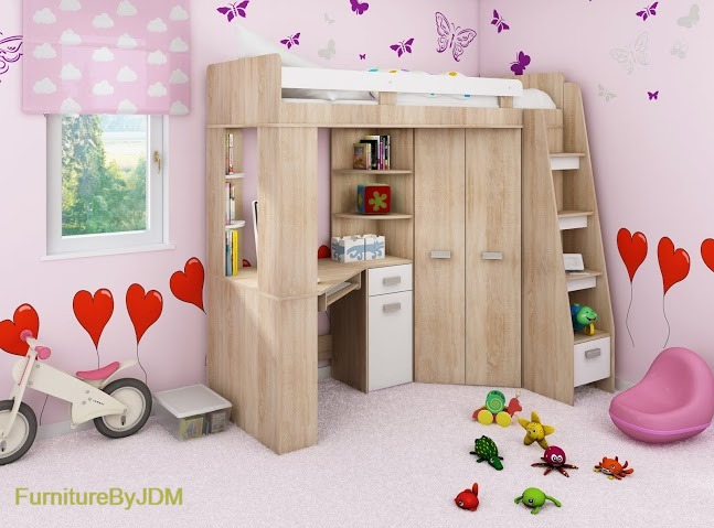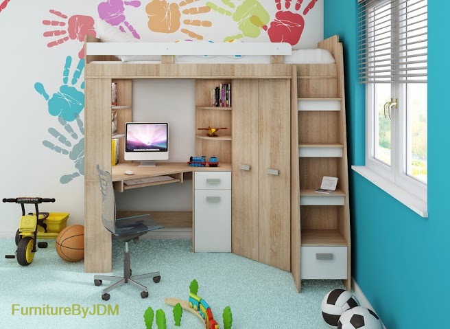 Lit mezzanine de la série ANTRESOLA G et/ou D c’est un meuble qui permet de meubler la chambre d’enfant de manière pratique et compacte. Il est très fonctionnel et spacieux. Il est équipé d’un lit superposé, où mènent les escaliers. En plus, la mezzanine offre beaucoup d’espace de rangement grâce à l’armoire et aux placards. D’autre part, le large plateau de table sert de bureau, en permettant l’apprentissage confortable.