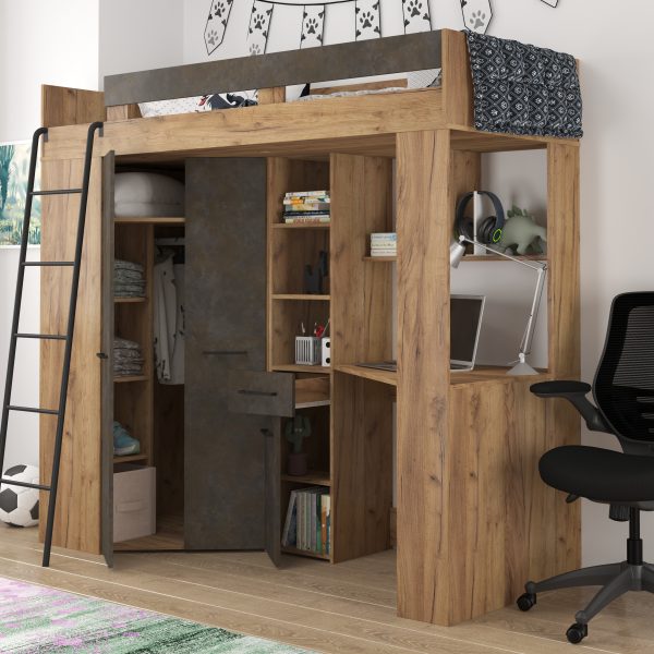 High Sleeper Bed with Desk and Wardrobe – FLOOR