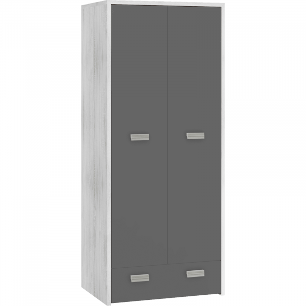2D wardrobe KIT-13 it is a classic two-door wardrobe equipped with a drawer, hanging rail inside and shelf as shown in the photo.