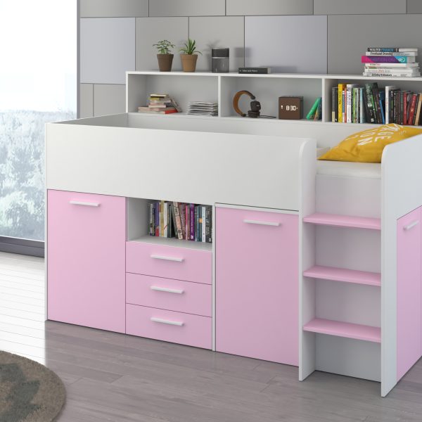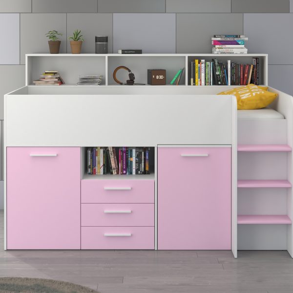 Mezzanine bed NEO White / Lavender – Right side steps