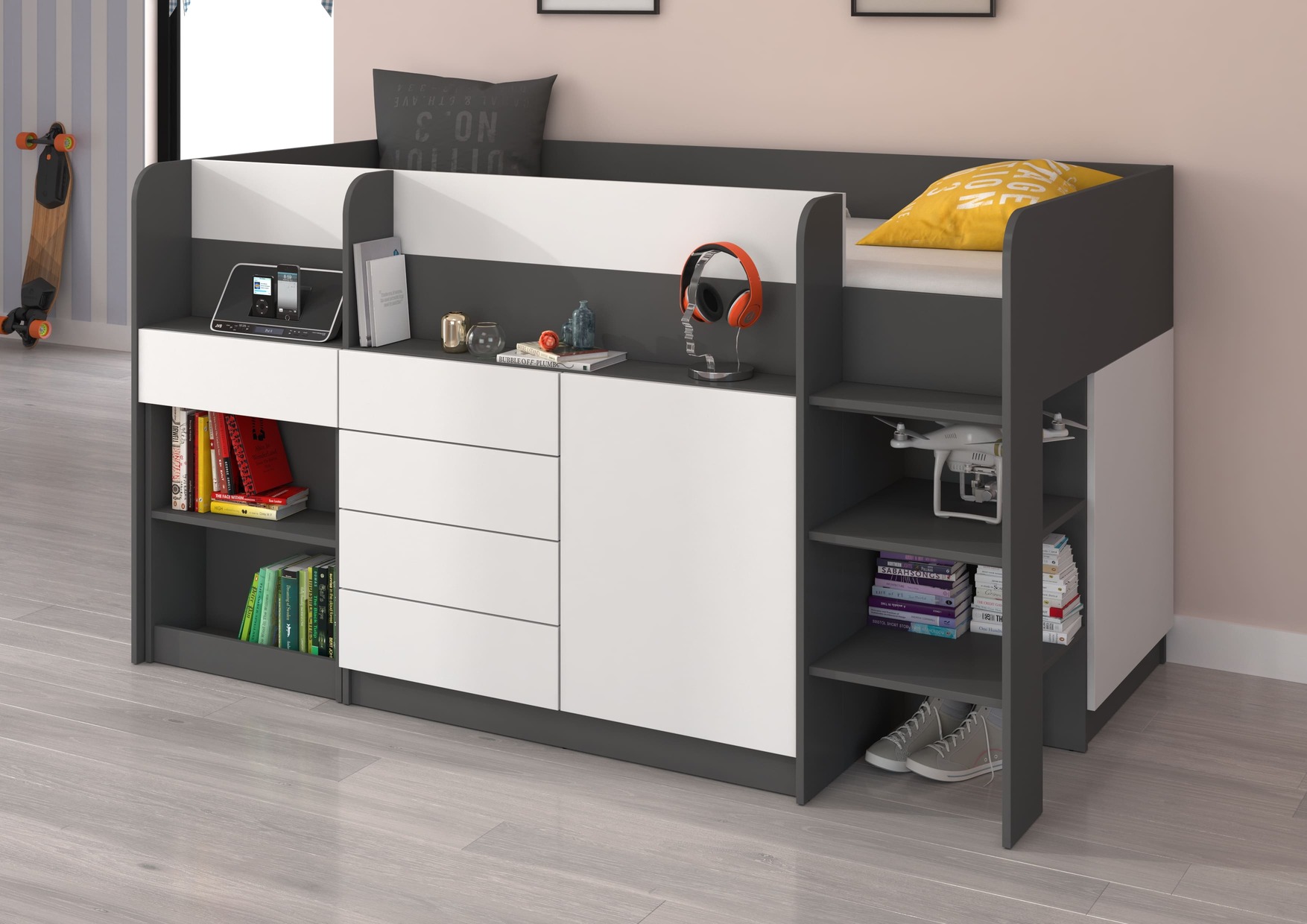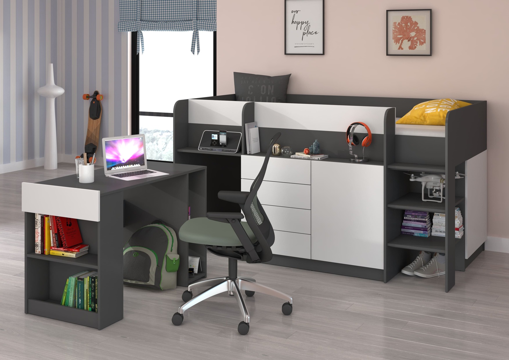 Mezzanine bed SMILE Graphite / White – Right side ladder