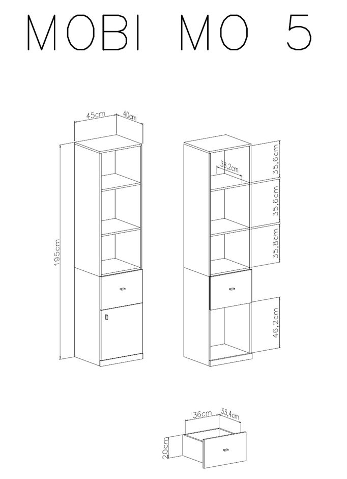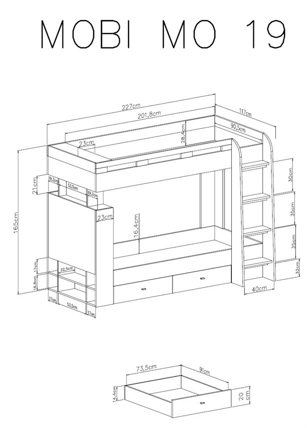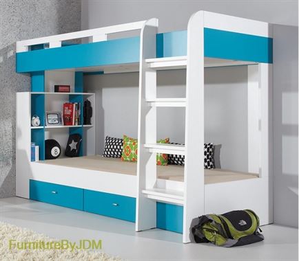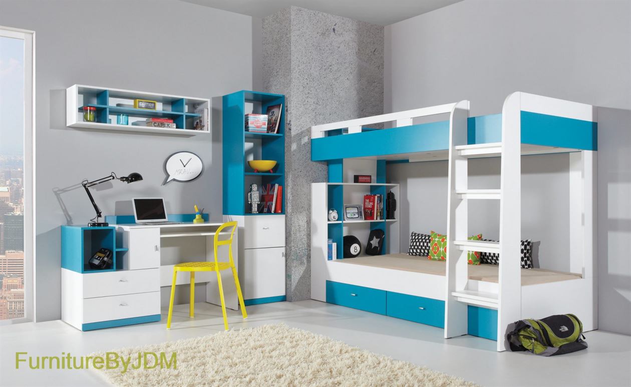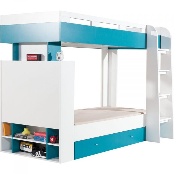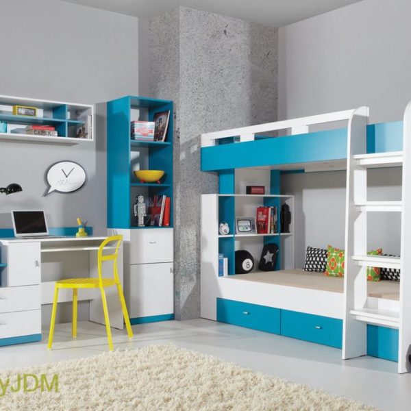 The MOBI System 19 it is a set of practical and functional furniture for the youth room, which includes: a bunk bed, a desk, a high bookcase with a cabinet and shelves, and a wall shelf as shown in the photo. It is characterized by functionality, compactness and space saving as well as futuristic design.