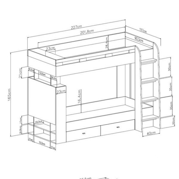 - 16mm laminated furniture board and 22mm in structural elements of beds