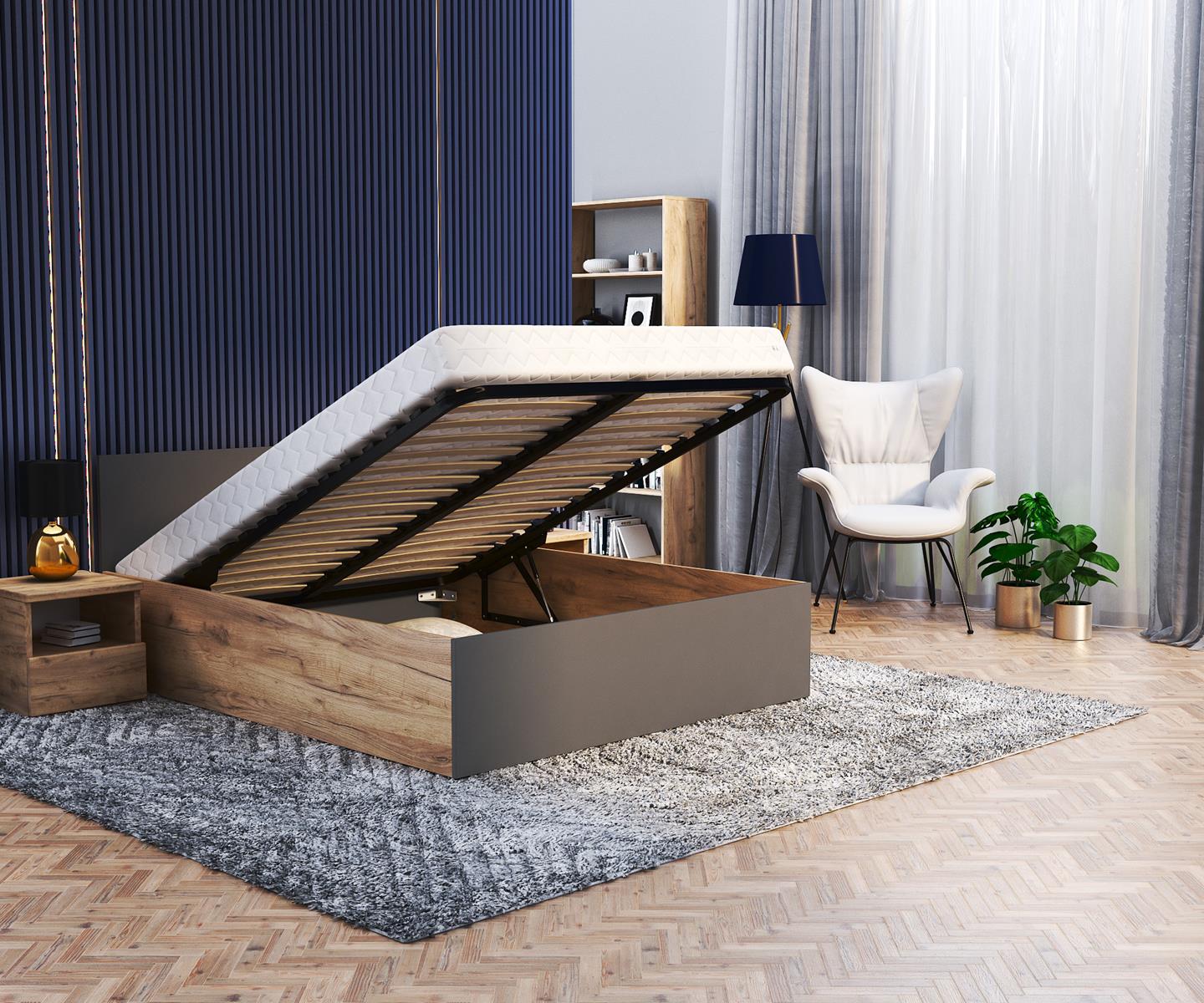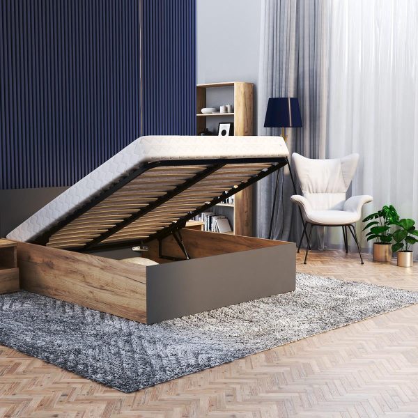 - Solid, metal frame with strong and flexible wooden slats – lifted by “automatic gas mechanism”