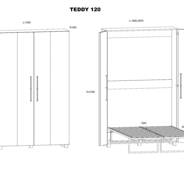 TEDDY 90 wall-bed / Murphy vertical bed without a mattress – bed hidden in the wardrobe. It is a compact and functional piece of furniture that saves space in your room