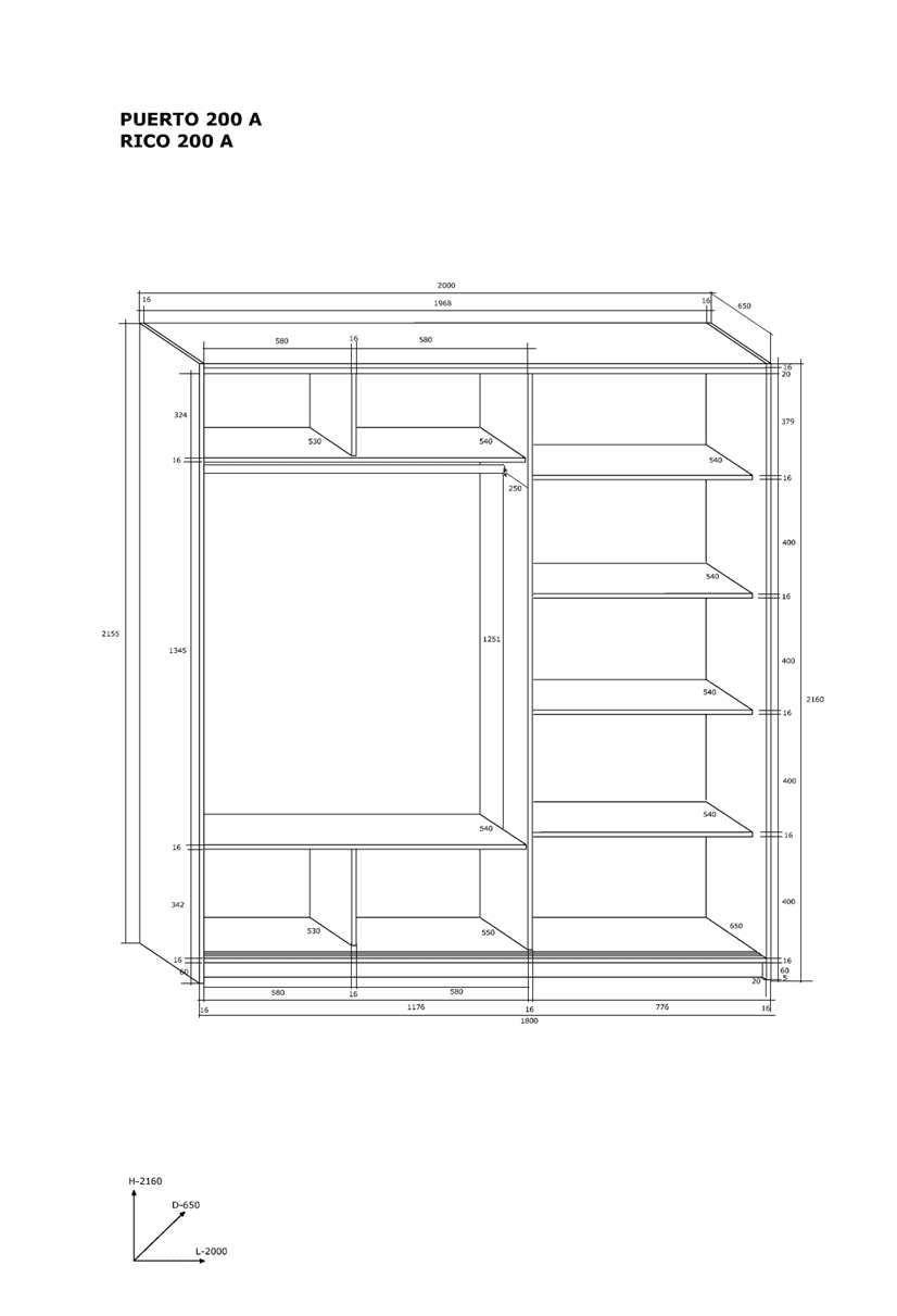 The wardrobe from the PUERTO 200A collection is a compact and practical piece of furniture that will fit perfectly into any color scheme of the room. The wardrobe is equipped with a 2 sliding door front with 6 shelves and a bar for hangers. Also it is complete with all standard manufacturer’s parts and accessories, in its original packaging. 12 months manufacturer’s guarantee. Product comes flat packed. Assemble required (2 people recommended).