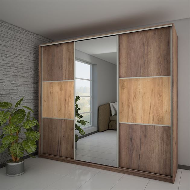Wardrobe RICO Mirror 240C – Craft Tobaco / Craft Gold
